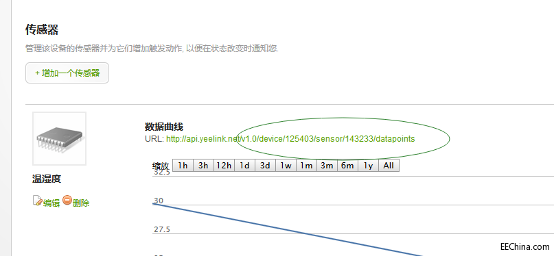 char send_data1[300] = "GET /v1.0/device/××××××××/sensor/×××××××/datapoints HTTP/1.1\r\nHost: api.yeelink.net\r\nContent-Length: 11\r\nU-ApiKey:××××××××××××(這里請用自己的APIKEY代替包括前面的ID)\r\n\r\n{\"value\":0}\r\n" /* 發送用到的數據 */