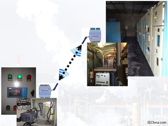 赤峰遠聯鋼廠為了控制高額的電量消耗,采用高壓變頻器技術改造其鼓風機供電系統,變頻器需要在配電室集中配電,使用控制箱在車間設定并監控變頻器調速模擬量給定值,距離大約800米。由于廠區用電設備分散,加上廠區環境比較復雜,不便于高成本的布線,因此需要對模擬量進行無線傳輸。