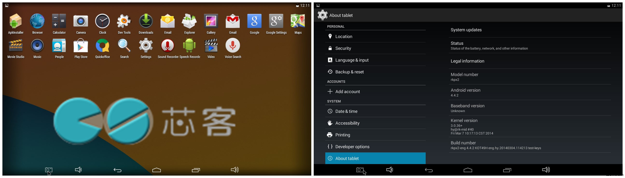 熟悉的Android界面很快就呈現(xiàn)在眼前,Unlock,Settings,About tablet(平板?),果然是4.4.2的版本,編譯時(shí)間2014.03.04。相當(dāng)?shù)臒岷鮺