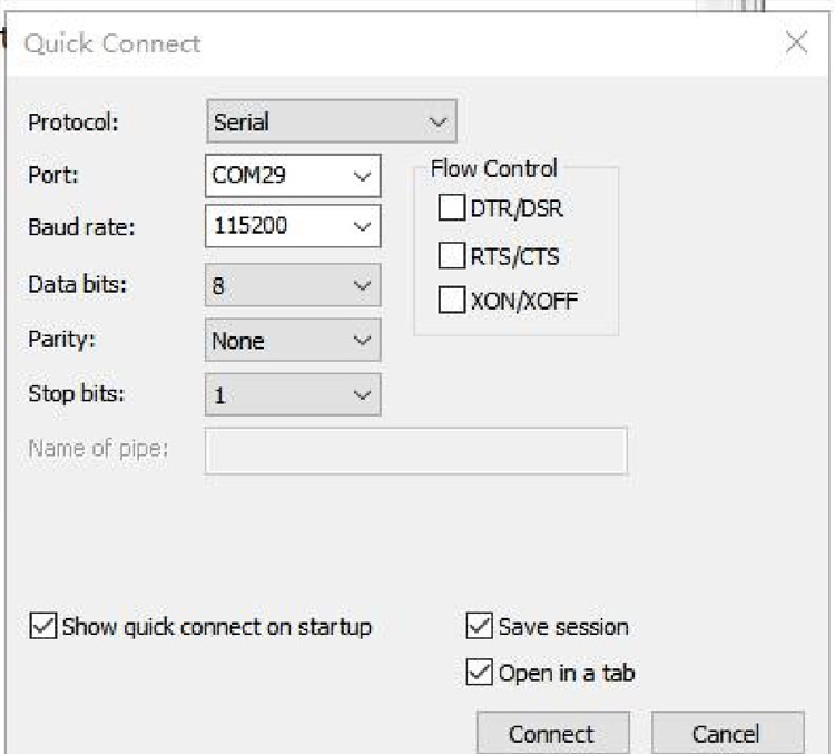選擇正確的 port 端口,應(yīng)用程序中默認波特率為 115200,所以設(shè)置波特率為 115200,然后連接設(shè)備。