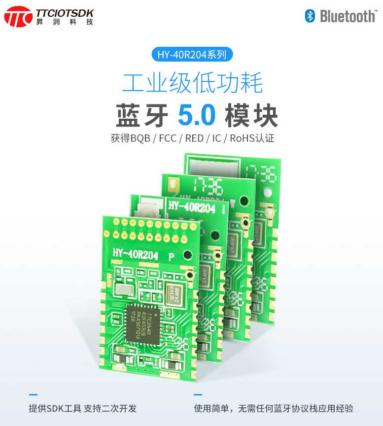 專業(yè)國際證書加持 | 目前,昇潤科技推出了通過強制性藍牙認證(BQB認證)的低功耗藍牙模組——HY-40R204系列和HY-40R201系列,內置了藍牙4.2 BLE協(xié)議,硬件支持升級藍牙5。不僅如此,昇潤科技的藍牙模塊通過了歐盟CE-RED、美國FCC、加拿大IC認證,專業(yè)的國際證書加持,進一步奠定了昇潤科技在低功耗藍牙技術市場上的領導地位。 |