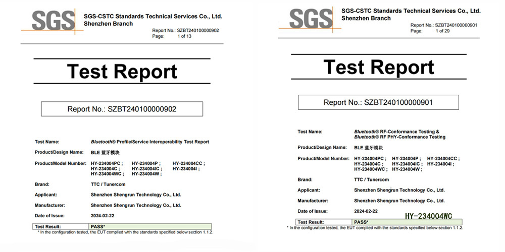 昇潤科技HY-234004系列藍牙模組符合全球無線電法規要求,配備專門的RF團隊支持開發者和客戶取得相關地區性認證證書。在產品認證階段即時響應實驗室認證資料和定頻樣機需求,具備深度對接實驗室認證測試項目的能力。同時,藍牙模組已具備相關地區認證證書,能大大縮短客戶項目周期,減少部分認證環節和節省成本,加快產品推向市場的速度,助力客戶在產品市場乘風破浪。