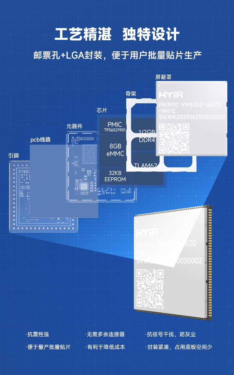 米爾AM62x核心板小巧,設計靈活,郵票孔+LGA設計