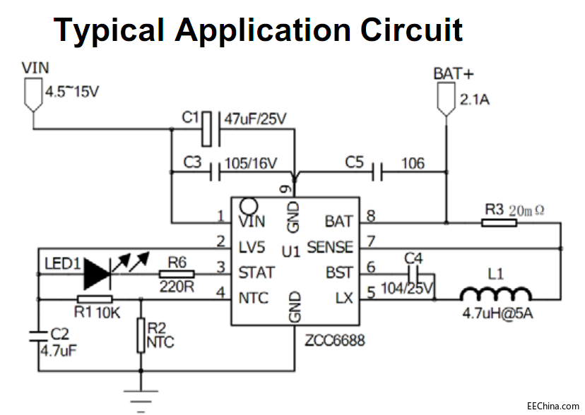 ZCC6688是一款3A鋰電池充電管理芯片,可以支持單節、雙節、三節、四節鋰電池充電管理應用。ZCC6688采用500Khz同步降壓拓撲結構,內置功率MOSFET,提升充電效率的同時,簡化了外圍電路結構,可以在廣泛的應用在便攜式手持設備。ZCC6688包含完整的充電循環,涓流、恒流、恒壓和終止充電、自動再充功能,可以支持1%精度的4.2V/8.4V/12.6V/16.8V鋰電池充電浮充電壓。充電電流設置、浮充電壓微調和電池節數選擇均由簡單的外部電路設置。附加功能包括:鋰電池短路保護、溫度保護和過壓保護功能。ZCC6688采用ESSOP10封裝。