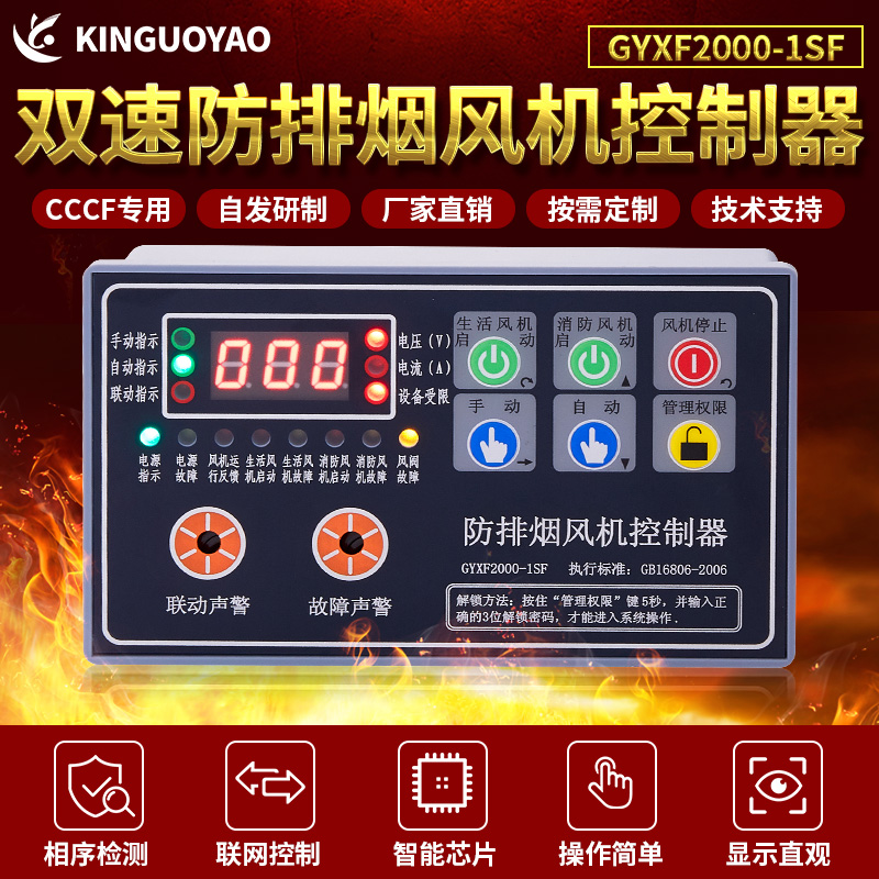 風(fēng)機(jī)控制器系列有很多,有智能風(fēng)機(jī)控制器、消防排煙風(fēng)機(jī)控制器、防排煙分體風(fēng)機(jī)控制器等等,不同系列風(fēng)機(jī)控制器,有單速和雙速之分,有單路和雙路之分,型號(hào)不一。消防電氣控制器廠家國(guó)耀電子KINGUOYAO供應(yīng)的風(fēng)機(jī)控制器型號(hào)有:GYXF230-1SF、GYXF230-1DF、GYXF230-2DF、GYXF2000-1DF、GYXF2000-2DF、GYXF2000-1SF、GYXF2000-1DF-M、GYXF2000-2DF-M、GYXF2000-1SF-M、GYXF2000-1DF-F、GYXF2000-2DF-F、GYXF2000-1SF-F、GYXF2000-2SF-F等等,它們之間具體有什么區(qū)別呢?
