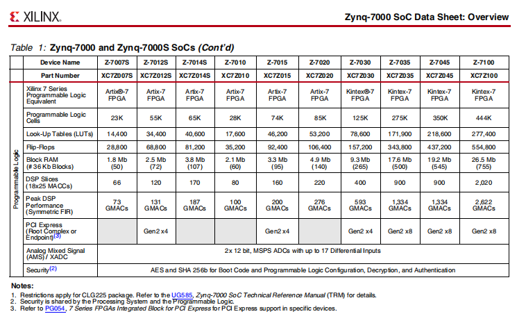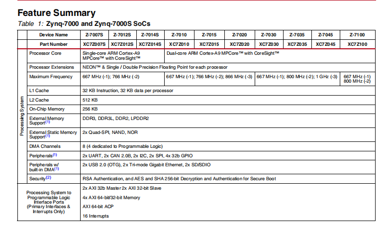 | ZYNQ | Xilinx XC7Z035-2FFG676I2x ARM Cortex-A9,主頻 800MHz(-2)/1GHz(-3),2.5DMIPS/MHz 1x Kintex-7 架構可編程邏輯資源 |