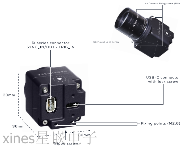 • 易于集成:4x M2 前置+ 2x M2.6 后置固定點(diǎn)+三腳架螺絲