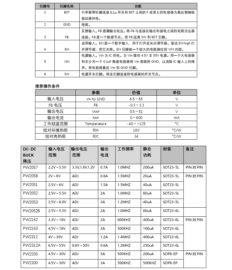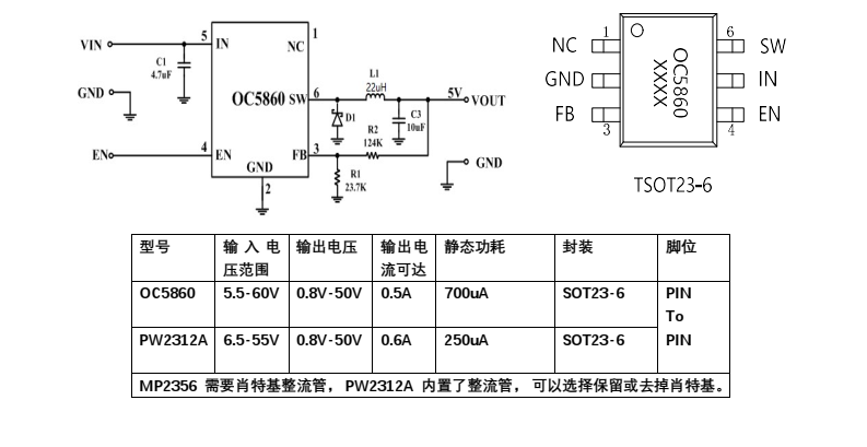 OC5860降壓芯片,PW2312A腳位一樣,節省肖特基規格書