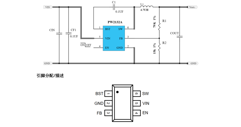 PW2312A 需要最少數量的現成的外部組件,并且采用節省空間的 SOT23-6 封裝。