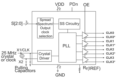◆通過外部引腳進(jìn)行擴(kuò)頻和頻率選擇