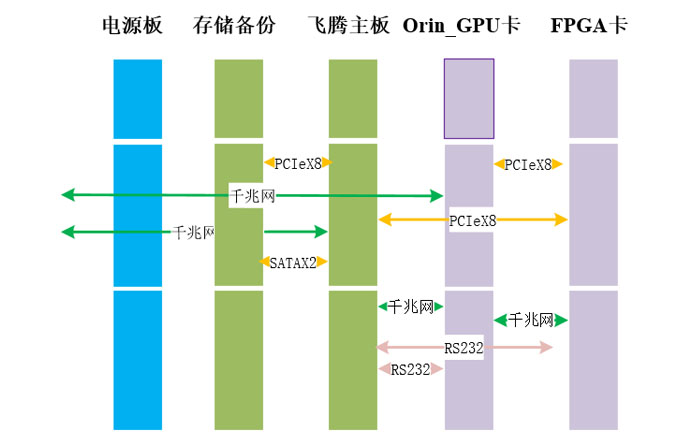 一、產(chǎn)品概述 設(shè)備基于3U VPX的導(dǎo)冷結(jié)構(gòu),集成FPGA接口預(yù)處理卡,GPU板卡、飛騰ARM處理卡,實(shí)現(xiàn)光纖、差分電口或者Camera link的圖像接入,F(xiàn)PGA信號預(yù)處理,GPU AI計(jì)算,飛騰ARM的采集管理存儲。 二、系統(tǒng)組成 系統(tǒng)組成包括:3U VPX機(jī)箱電源、3U VPX背板、 1塊3U VPX V7采集處理板、1塊3U VPX AGX orin GPU計(jì)算主板、1塊3U VPX飛騰處理器計(jì)算板。    2.1基于XC7V690T的3U VPX信號處理板(274)  本板卡系我司自主研發(fā)的基于3U VPX導(dǎo)冷架構(gòu)的信號處理板,適用于高速圖像處理等。芯片采用工業(yè)級設(shè)計(jì)。該處理板包含1片Xilinx公司的Virtex7系列FPGA-XC7V690T-2FFG1761I。板載兩組64位寬DDR3,每組容量4GB,一個(gè)HPC FMC接口。VPX接口連接4組x4 GTH,24組LVDS,一路RS422,一路1000Base-T。板卡的電氣與機(jī)械設(shè)計(jì)依據(jù)VPX標(biāo)準(zhǔn)(VITA 46.0),支持導(dǎo)冷,能夠滿足用戶在特殊環(huán)境下的使用需求。