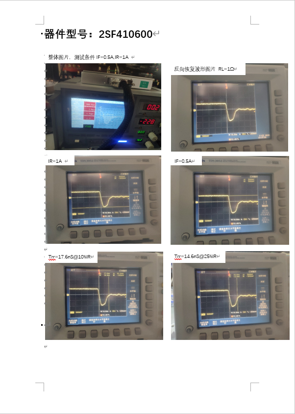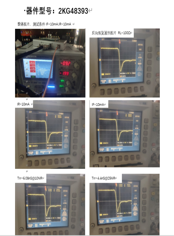 通過DI-1nS-1n4148測試六款二極管反向恢復時間,測試結果如下: