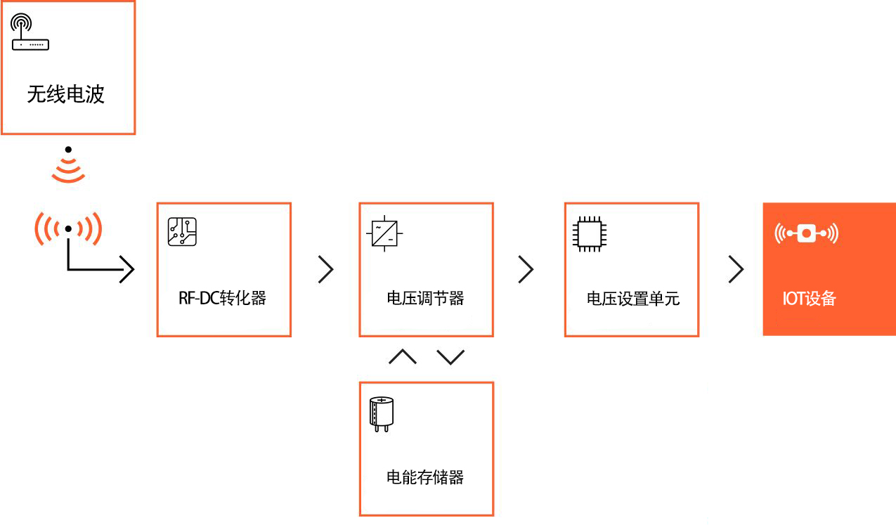 由于它受所處環境下或者自身體積限制不便使用太陽能或振動等產生的能量,所以就需要用到一種特殊物體—無線電波,它消除了線材、空間和日照的約束,不論在哪里、什么時間都存在。而且無線電波有低頻電波、高頻電波和超高頻電波,它發射的能量也是不同的。這種能量可以是任何類型的無線電波,例如由 TV/FM 電臺、WiFi路由器、蜂窩基站或雷達發出的無線電波。總之,由無線電波發射而收集的能量轉化成電能,這里統稱為無線獲能(RF Energy Harvesting)。