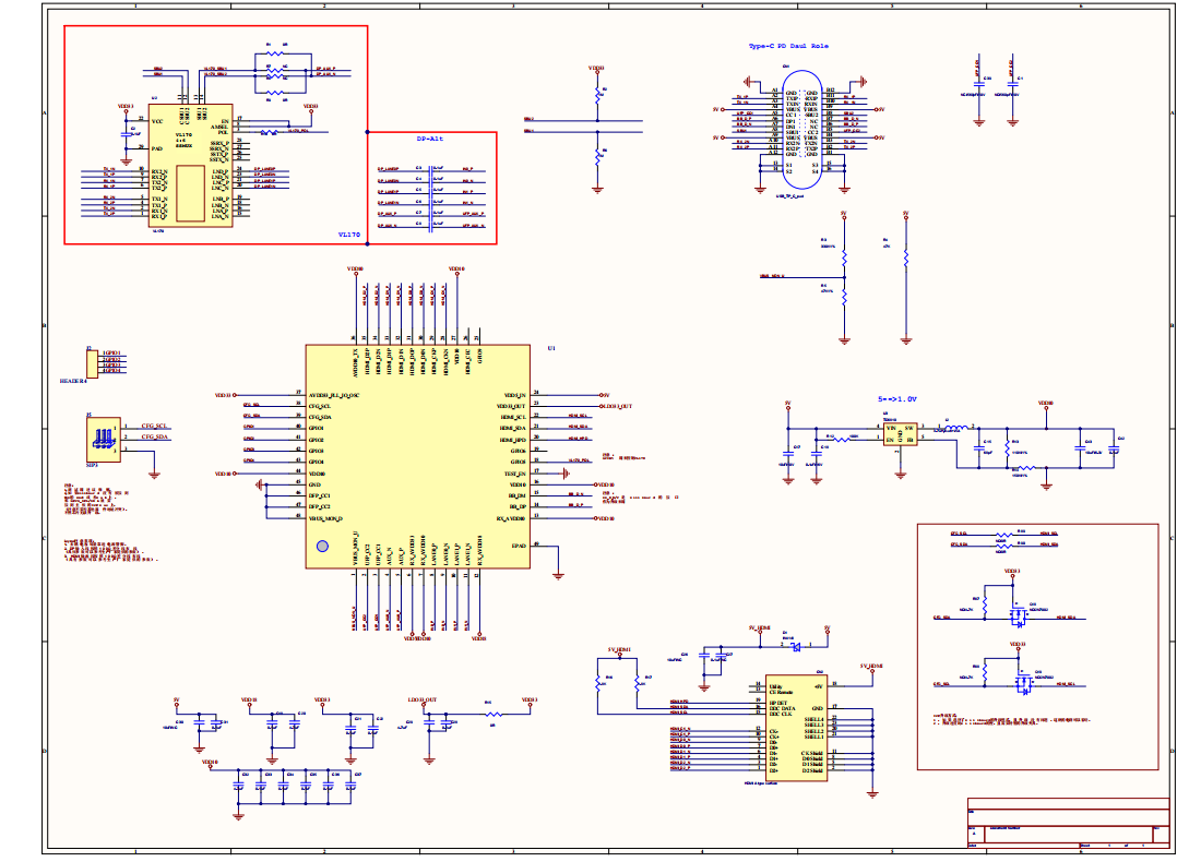 CS5261+VL170支持Type-C母座正反插轉HDMI投屏方案,CS5261 4K30HZ typec拓展方案芯片,設計參考電路圖: