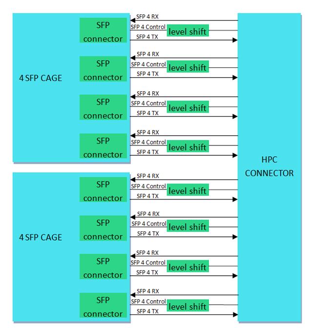 一、板卡概述 本卡是一個(gè)FPGA夾層卡(FMC)模塊,可提供高達(dá)8個(gè)SFP / SFP +模塊接口,直接插入千兆位級(jí)收發(fā)器(MGT)的賽靈思FPGA。支持業(yè)界標(biāo)準(zhǔn)的小型可插拔(SFP / SFP +)收發(fā)器模塊接口。 板卡支持8路光纖同時(shí)使用,也可以top面四路或者bottom面單獨(dú)四路使用。  二、性能指標(biāo)