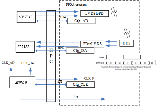 一、板卡概述· ADC采用TI的ADS62P49,2通道250M,14bit,共1片; · DAC采用ADI的AD9122,2通道,16bit,可達(dá)1.2G,共1片; · 時(shí)鐘采用AD9516,支持板上時(shí)鐘和外接時(shí)鐘; · 共6個(gè)SSMB接口,1個(gè)FMC/LPC接口  二、性能指標(biāo)板卡功能 | 參數(shù) | 內(nèi)容 | ADC | 芯片型號(hào) | ADS62P49 | 路數(shù) | 2路ADC, | 采樣率 | 250Msps | 數(shù)據(jù)位 | 14bit | 數(shù)字接口 | DDR LVDS | 模擬接口 | 交流耦合 | 模擬輸入 | ±1V | 輸入阻抗 | 50Ω | 模擬指標(biāo) | | DAC | 芯片型號(hào) | AD9122 | 路數(shù) | 2路DAC, | 轉(zhuǎn)換率 | 600Msps,插值1.2Gsps | 數(shù)據(jù)位 | 16bit | 數(shù)字接口 | DDR LVDS | 模擬接口 | 交流耦合 | 模擬輸出 | ±1V | 輸出阻抗 | 50Ω | 模擬指標(biāo) | 信噪比SNR:69.327dBFS | 時(shí)鐘 | PLL芯片 | AD5616-1 | 板載晶振 | 10MHz 溫補(bǔ)晶振VCXO | 外輸入時(shí)鐘 | 默認(rèn)10MHz,3.3V LVTTL電平 | 外觸發(fā) | 路數(shù) | 1路輸入 | | 電平 | 3.3V LVTTL電平 | 連接器類型 | FMC-LPC | ASP_134604_01 | | 前面板 | 6路 SSMB | 板卡標(biāo)準(zhǔn) | FMC ANSI/VITA 57.1 - 2008 | 板卡尺寸 | 69X76.5mm | 板卡重量 | (含散熱片) | 板卡供電 | +12V@1A | 板卡功耗 | 8W | 工作溫度 | Industrial -20℃到+70℃ | 支持母板 | Xilinx board | V6、V7、KU、VU、 ZYNQ、ZU 開(kāi)發(fā)板 | Orihard board | 136、270、367、288、330、274、3、9 |