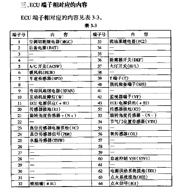 ECU各端口功能說明,這下有戲了,本著先易后難的原則,此次DIY就只弄測(cè)量發(fā)電機(jī)轉(zhuǎn)速和測(cè)量車內(nèi)溫度兩個(gè)功能。本來想從分電器的“轉(zhuǎn)速及旋轉(zhuǎn)角度傳感器”上取轉(zhuǎn)速信號(hào),后來