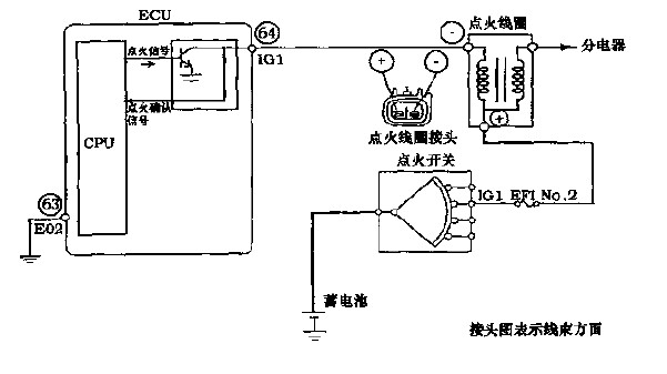 拆下ECU后實(shí)際測(cè)量,發(fā)現(xiàn)此信號(hào)電平太低僅0.4~0.5V,要增加信號(hào)放大級(jí),這樣會(huì)使電路變的復(fù)雜。后來又想到取點(diǎn)火信號(hào),實(shí)際測(cè)量點(diǎn)火信號(hào)在