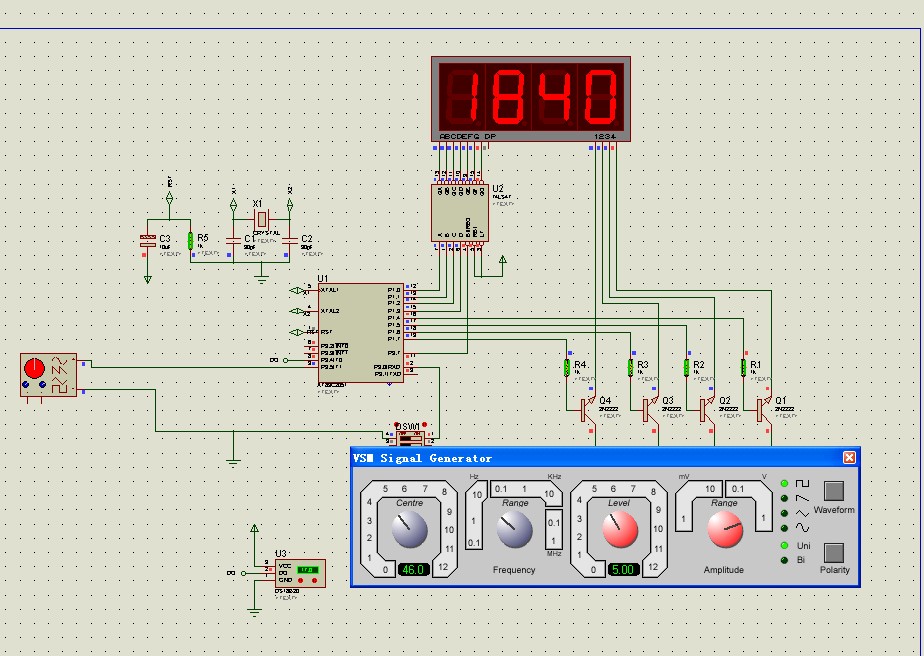 單片機(jī)U1采用AT89C2051,為了節(jié)約IO口方便以后添加功能,LED顯示部分使用了7段譯碼器U2
