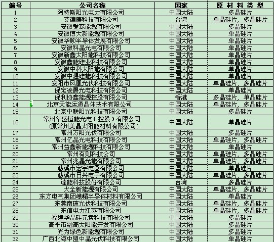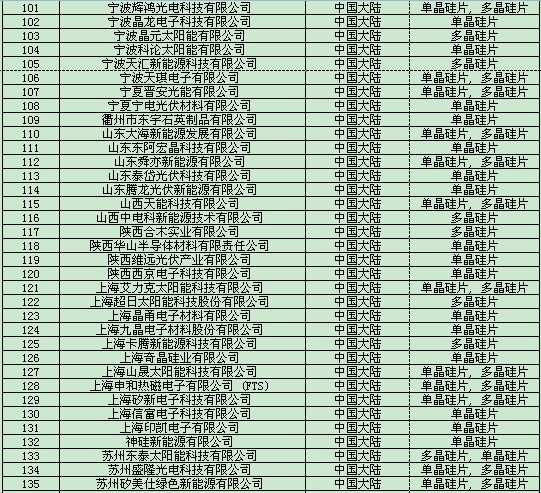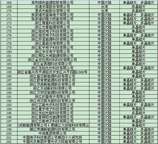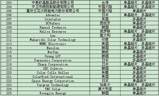硅片是用于太陽能光伏電池片生產的重要原材料之一,所謂的硅片就是經過單晶拉棒、多晶鑄錠之后將其進行切割的一種工藝拉。通常硅片的種類有以下幾種,單晶125、156,多晶125、156,其中多晶125就是一個方形。以下列出國內外225個硅片制造商,供大家產考。