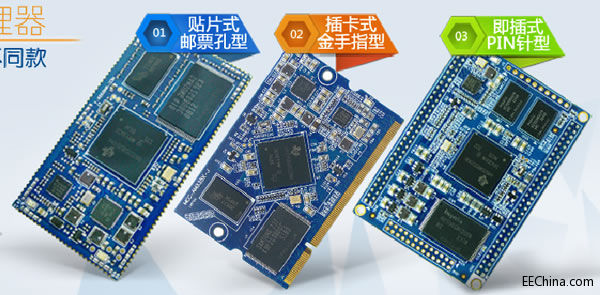最近,米爾科技在插針式核心板的基礎上,又推出了郵票孔和金手指兩種核心板,及其配套的底板,成為AM335X完整的解決方案,三塊核心板: