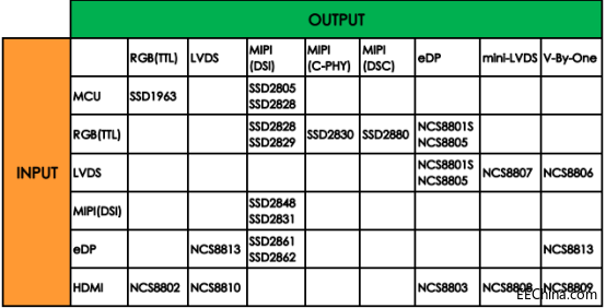 近年來隨著電子產業的高速發展,智能顯示設備也取得了輝煌的成就,高清顯示得到了消費者的青睞。目前高清顯示協議接口有RGB、LVDS、MIPI、eDP、HDMI、miniLVDS、V-by-One等,由于方案公司設計產品時通常會遇到信號協議轉換問題,基于這個問題可以有以下解決方案。