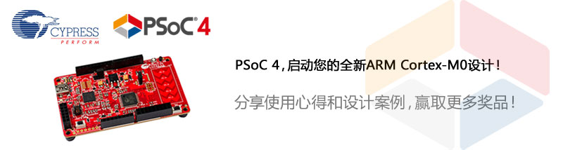 ·9月12日~11月30日:所有已得到開發工具者(無論高校師生,還是企業工程師)進行工具試用,在 EEChina單片機論壇 發布試用報告(使用心得或設計案例),為便于整理統計,題目請以【PSoC 4試用報告】開頭