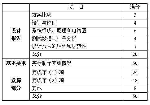 3.設計報告正文應包括系統總體框圖、核心電路原理圖和主要的測試結果。完整的電路原理圖、重要的源程序和完整的測試結果可用附件給出。