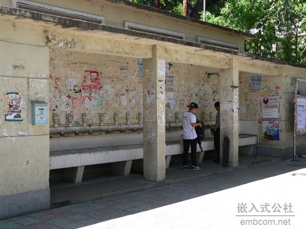 剛剛幾分鐘前,我又在照片上發現了一個細節:那水龍頭還是“高科技”的!每個水龍頭上面都有一個讀卡器,而且有連線通往水龍頭開關,看來打開水是要付費的。俺上學的時候開水可是隨便打的。不懂。