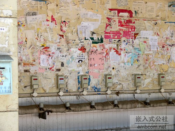 不過,多走了些路也有些好處,看到了北工大校園里兩個不錯的景點。一個是打開水的地方。剛看到的時候我還以為是類似北大三角地的公告區,因為墻上密密麻麻貼滿了廣告。后來才注意到有人在打水,于是發現了下面那一排水龍頭。