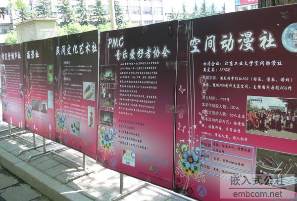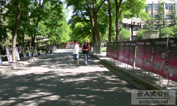 另一個亮點是各種協會、俱樂部的廣告,沿著一條林蔭路的兩旁布滿了各個協會的牌子。美中不足的是,這些廣告都是一種色調,看來是統一制作的,頗有制造虛假繁榮的嫌疑。這條路從北邊的居住區通往南邊的教學區,是個不錯的廣告場所。