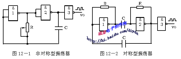 如圖12-1所示,非門3用于輸出波形整形。