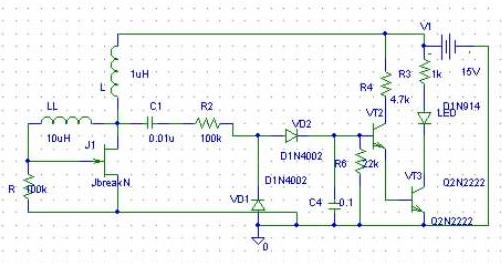 通用的方法是制作一個振蕩電路,將被測的晶體接入,看是否起振。若起振,說明晶體是好的,否則是壞的。一個常用的檢測電路如圖:被測晶體與場效應管VT構成一個振蕩器。,若晶振良好,振蕩器起振,信號經過C1耦合至VD1,VD2整流、C2濾波,在經過復合放大電路放大,驅動LED發光,如晶體管損壞,則振蕩器不能起振, LED不能發光。電感L用來阻止振蕩信號通過,只能通過直流。其中LL代表被測晶體。