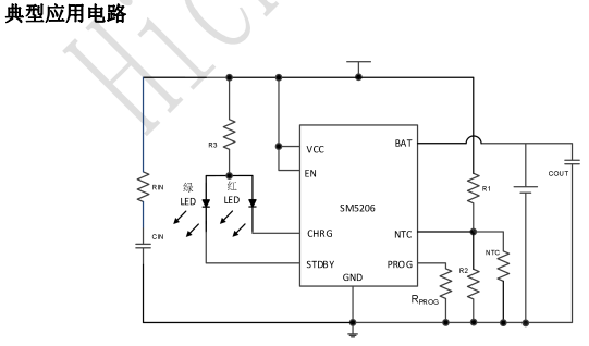 電源)被拿掉時,SM5206 自動進入一個低電流狀態,將電池漏電流降至 0.25μA 以下。也可將 SM5206置于停機模式,從而將供電電流降至25μA。SM5206 的其它特點包括充電電流監控器、欠壓閉鎖、自動再充電和一個用于指示充電結束和輸入電壓接入的狀態引腳。