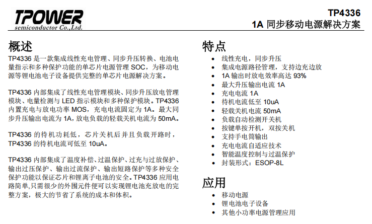 TP4336 是一款集成線性充電管理、同步升壓轉(zhuǎn)換、電池電