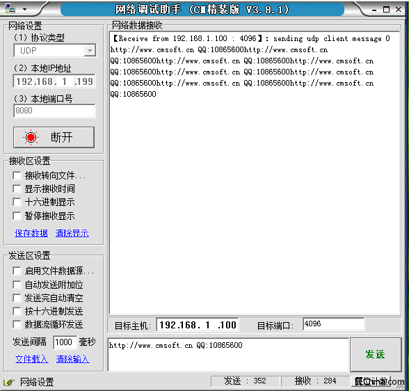 主控:lpc1788,512KBflash,96kBSRAM,4kBEEPROM。PHY芯片:lan8720 1.UDP客戶端實(shí)驗(yàn)現(xiàn)象