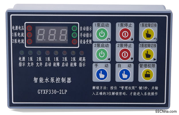 智能水泵控制器GYXF330-2LP,是應市場需求推出的一款高性能產品,主要用于排污泵、穩壓泵、給水泵等控制。本裝置用于水泵控制設備中的邏輯運算、自動遠程信號處理、接觸器驅動、電壓電流顯示及負載故障保護切換,適 ...