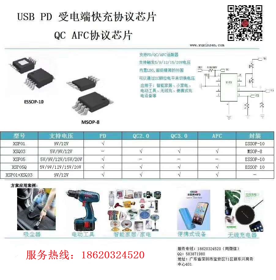 | PD受電端協議芯片,PD受電端誘騙芯片,支持PD QC AFC協議,一芯多用,性價比高,量產出貨,性能穩定,兼容性高,封裝小,可用于便攜式設備、電動工具、充電設備、無線充、智能家居、小家電等,歡迎咨詢18620324520同微 洽談 拿樣 |