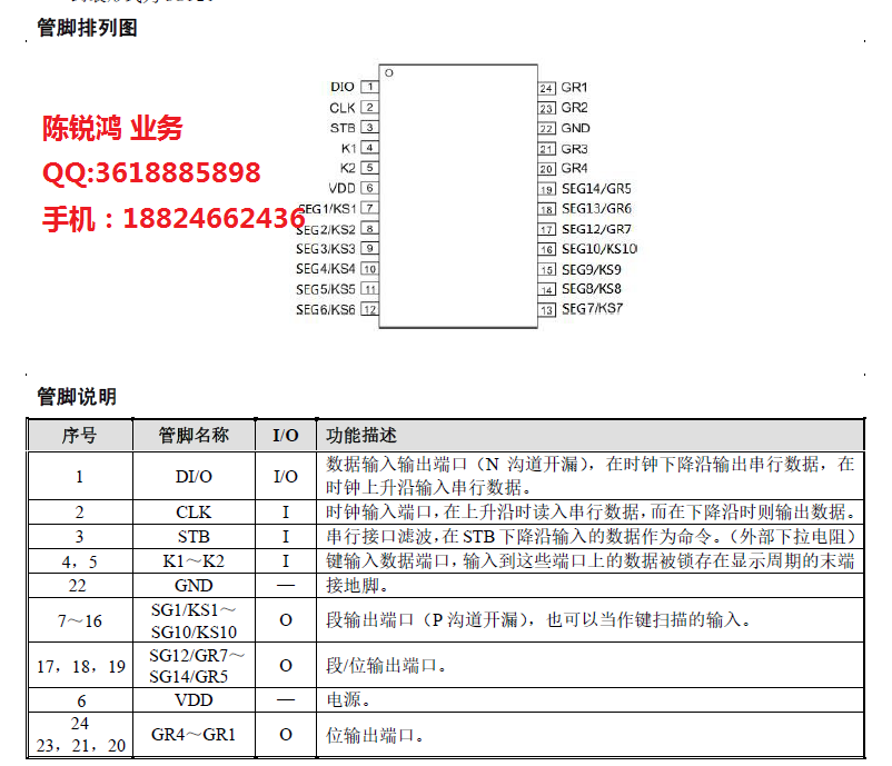 VK1668 SOP24/SSOP24 70點陣 三線串行接口 LED數(shù)顯驅(qū)動IC