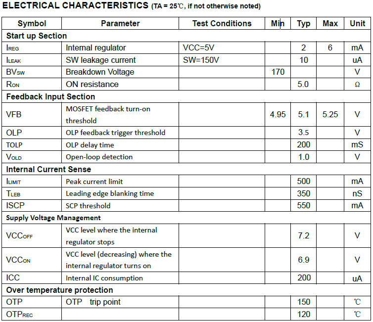 總體描述: SL3150是一款降壓調節器,它提供精確的恒定電壓(CV)無光藕合器調節。它有一個集成150V MOSFET以簡化結構和降低成本。這些特征使其成為離線低壓的理想調節器電源應用,如家用電器和備用電 ...