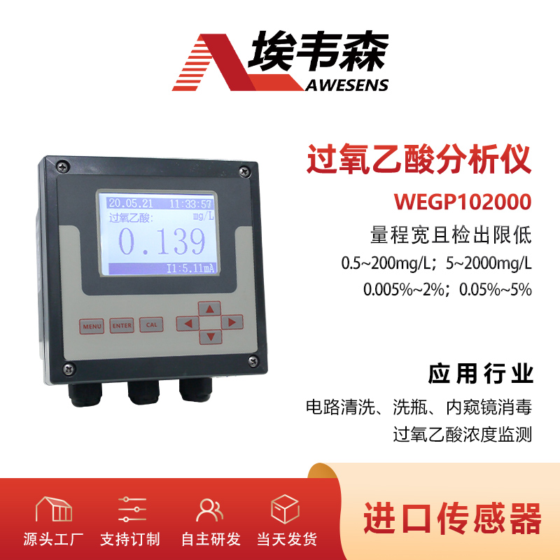 埃韋森在線過氧乙酸分析檢測儀WEGP102000是帶微處理器的水質在線監測儀。配高精度傳感器,量程寬且檢出限低,自帶溫度補償,分辨率高達0.001mg/L,測量精度高,低維護,響應靈敏,零點穩定,現場僅需一點標定即可,L ...