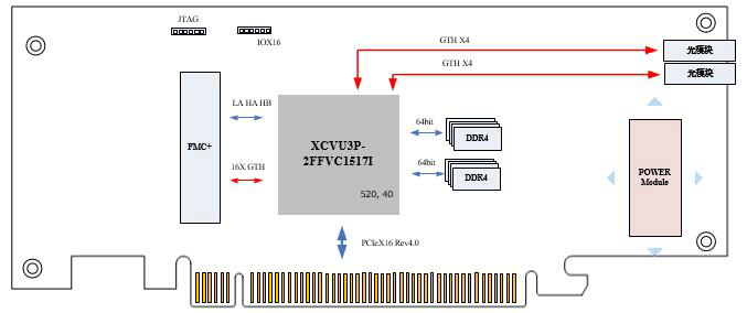 基于FMC+的XCVU3P高性能 PCIe 載板一、板卡概述 板卡主控芯片采用Xilinx UltraScale+16 nm VU3P芯片(XCVU3P-2FFVC1517I)。板載 2 組 64bit 的DDR4 SDRAM,支持 IOX16或者 JTAG ...