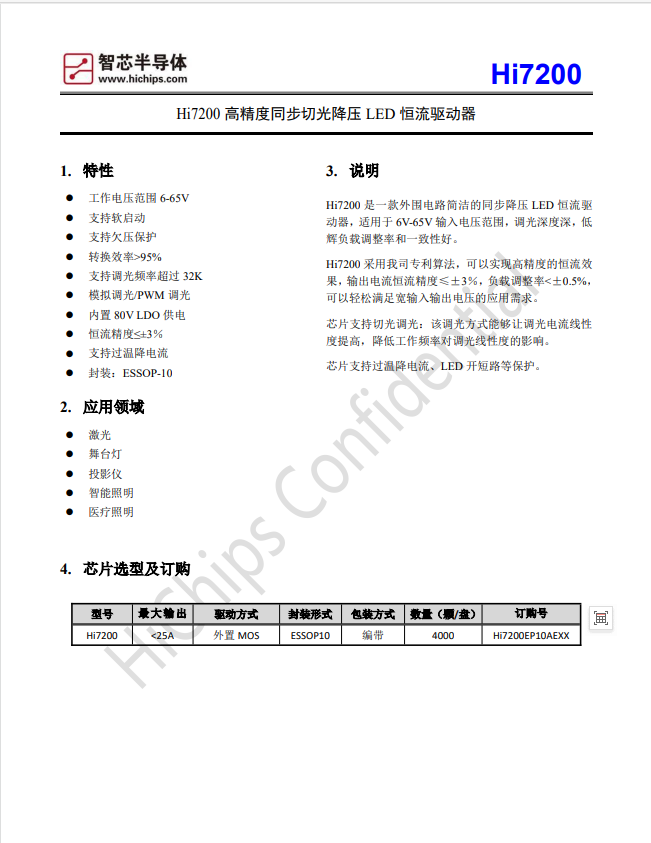 Hi7200同步降壓恒流驅動器6V-65V ±3%恒流精度智芯一級 ...