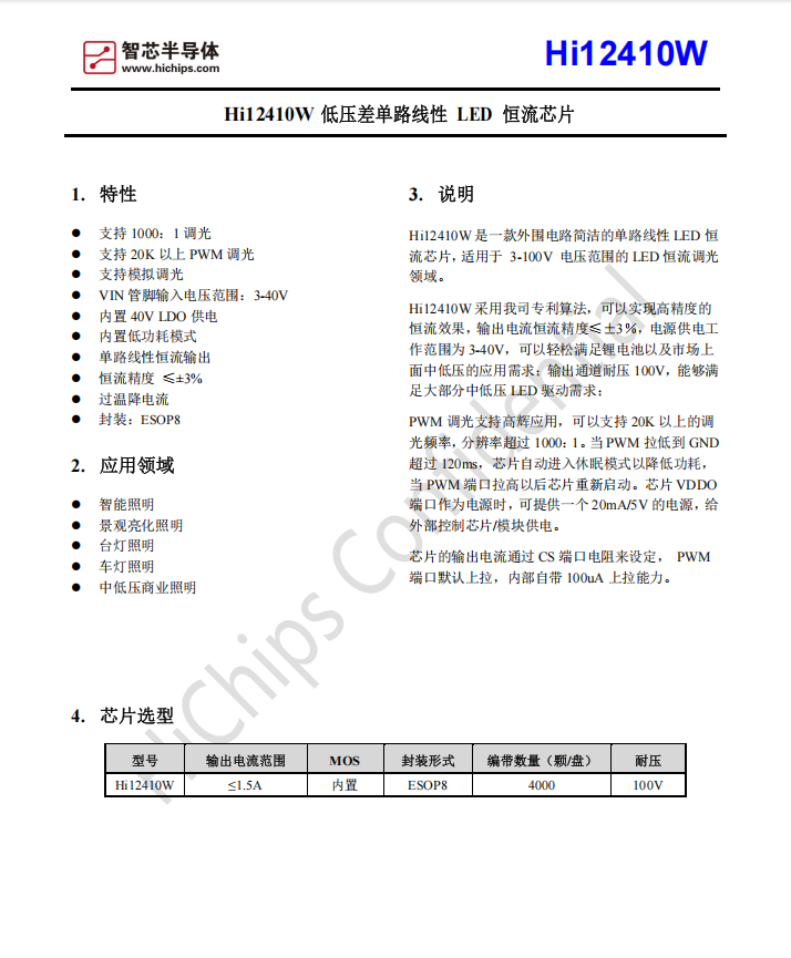 Hi12410W單路線性LED恒流芯片智芯一級代理聚能芯半導體 ...