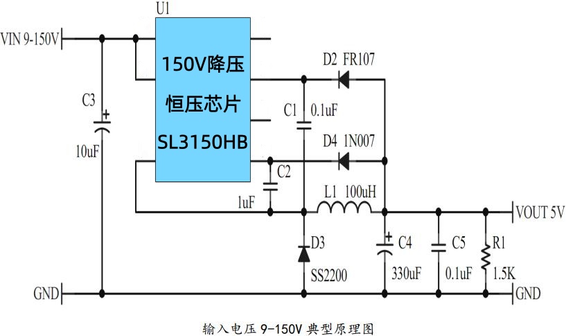SL3150HB 150V/0.8A 開關降壓轉換器:5V 固定輸出 + 低 ...