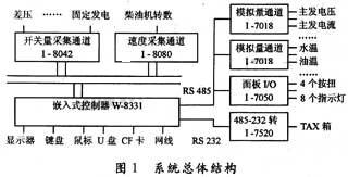 內燃機車各部件運行數據,尤其是機車運行中的動態參數,是分析和考核機車運行狀態的基礎。目前國內新出廠的機車都已配備了一定功能的機車車輛信 息監測系統,但早期生產的機車沒有此設備,另外不同管理模式對車輛信息監測系統的需求也不完全相同。DF4B/4C機車原有的機車安全信息綜合檢測裝置 (簡稱TAX 箱)記錄了部分車輛運行數據,但對車輛維護數據記錄的很少,即機車在牽引運用狀態下,機車各工況數據的動態記錄缺乏,不利于綜合利用各項監控數據對機車在 運用過程中反映出的各種狀況進行綜合分析。因此,我們開發了DF4B/4C機車車輛運行信息實時監測系統,與機車上原有的TAX記錄儀一起,實時記錄車輛 牽引運用時的油、電、水等系統的工況數據。通過數據分析軟件對機車運行數據進行分析判斷,掌握設備、部件的技術狀態,為機車的預防性維修、檢修提供真實的 依據。 1 設計思想 目前已經裝車的一些機車運行信息檢測裝置大多采用單片機設計,功能固定,性能簡單,不具靈活性與擴展性,無法在機車運行時現場分析運行數據。由多個單片機組成的系統沒有形成模塊化,給裝置本身的故障維修造成困難。 隨著以應用為中心的嵌入式系統性價比不斷提高,采用通用工業級嵌入式控制器做機車應用,可大大提高系統開發周期,提高系統可靠性及工作效率。 本機車運行信息實時檢測系統(裝置)主要應用于車頭,設計思想是:使用標準的工業級嵌入式控制器硬件,使用標準嵌入式操作系統,使用常規的外部 設備,例如標準鍵盤、通用顯示器、U盤、CF卡等。使用通用的可視化開發工具,利用網絡化開發環境,采用標準的工業級I/O通道,使裝置完全模塊化。搭積 木式的系統設計組織靈活、開發快捷、功能強大、可擴展性強。軟件可以在車上調試按需擴充,可以在機車運行現場進行數據分析,模塊化的結構使裝置本身的維修 非常方便。 2 系統硬件設計 2.1 系統功能需求 原 DF4B機車上的TAX監控裝置記錄了部分機車運行參數,例如時間標、車速、信號機號、公時標、總量、計長、量數、本機補機、貨客車、車次、區段號、車站 號、司機號、副司機號、機車號、機車型等信息。本項目在DF4B機車操作臺上安裝機車運行信息實時監測裝置,記錄機車的各種實時運行工況參數。除保留原車 上TAX監控裝置提供的各項機車運行參數外,根據維修的需要,增加差示壓力、空轉、接地、總過流、故障勵磁、固定發電、本車卸載、水溫、油溫、燃壓、滑 壓、輔助電壓、充放電流、6個電機分流、主電壓、主電流等采集參數。在列車運行過程中實時檢測和記錄機車動態運行數據。 2.2 系統硬件總體結構 根據系統功能需求,設計的系統硬件總體結構如圖1所示。