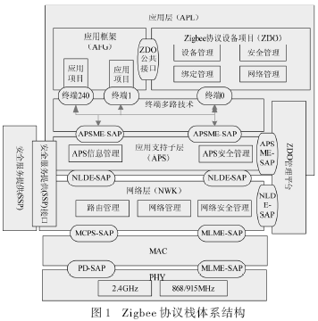 1 協(xié)議棧體系結(jié)構(gòu)及規(guī)范 Zigbee協(xié)議棧體系結(jié)構(gòu)如圖1所示[1],