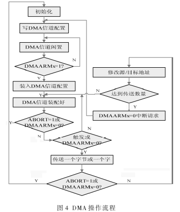 的傳輸使用直接存取(DMA)控制器進(jìn)行操作,可以減輕8051CPU核傳送數(shù)據(jù)時(shí)的負(fù)擔(dān),實(shí)現(xiàn)CC2430在高效利用電源條件下得高性能,其操作流程如