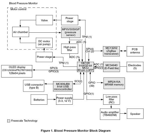 如 果使用簡單示波法,病人手臂上的袖帶的沖氣壓必須高于病人的收縮壓。而問題是系統并不直到病人的收縮壓,因此,系統就必須給袖帶過度沖氣,以確保能夠發現 收縮壓,但這樣病人會很不舒服。使用Coldfire V1,系統可以采用反向示波法。在該方法中,32位內核可以過濾掉袖帶沖氣過程中電機所帶來的噪聲。