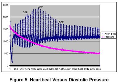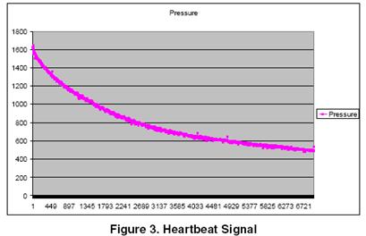 該信號顯示壓力信號的變化,是一段時間內病人心跳的圖形顯示(圖4)。